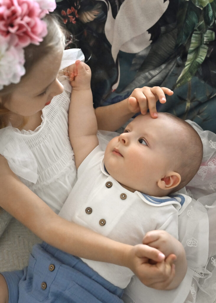 sesja rodzinna life style jeszcze przed ubieraniem do chrztu
