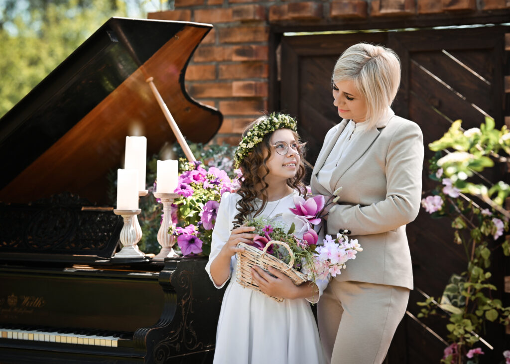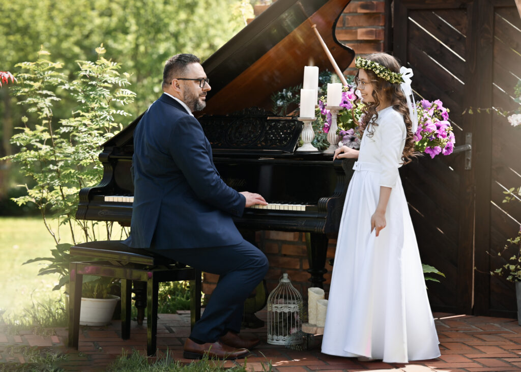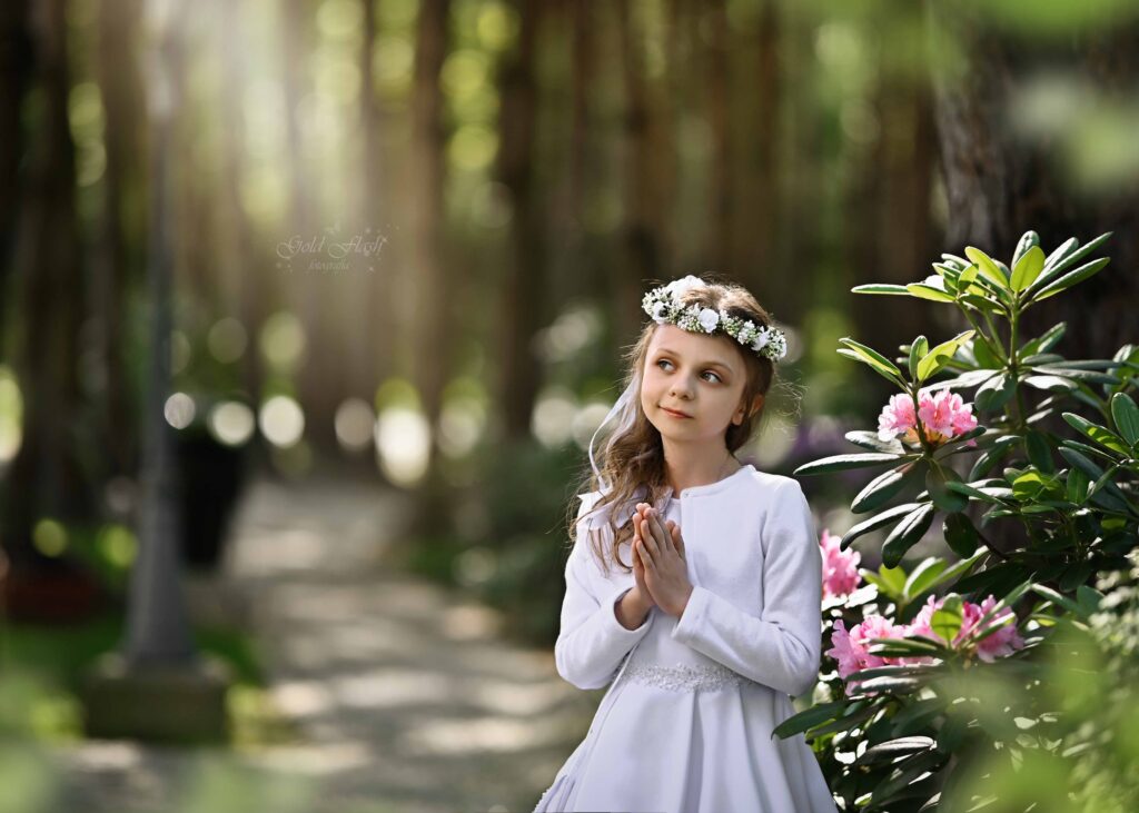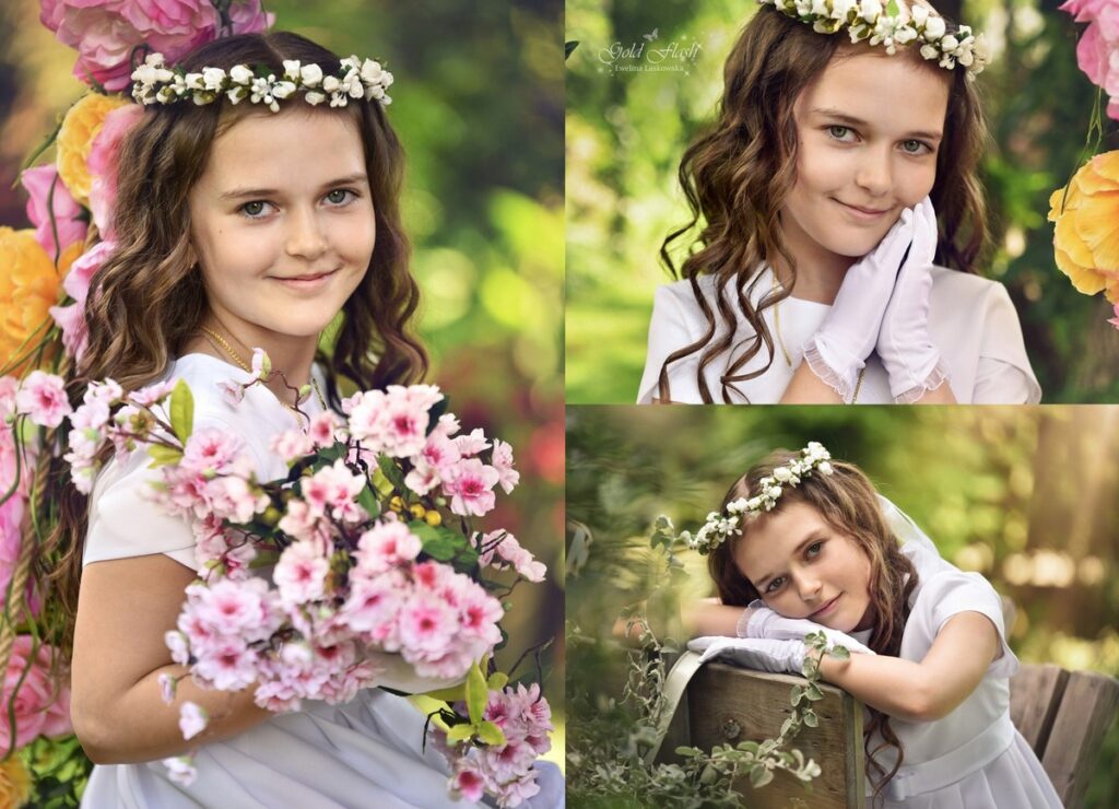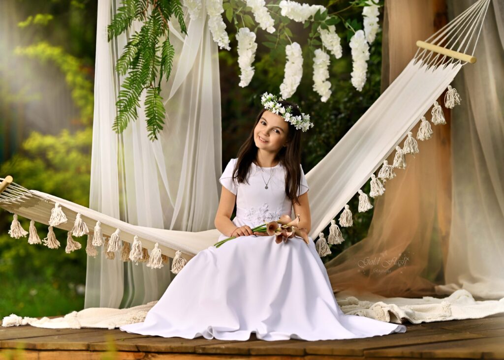 Na przyjęciu organizujemy mini sesje plenerową dla dziecka komunijnego wraz z gośćmi oraz sesję portretową dla dziecka komunijnego.